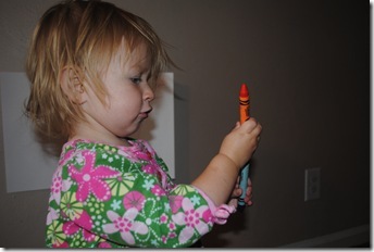 . . . of school! Well, technically it’s Mother’s Day Out – but we call it school. Maddie has been excited to go to “cool” for a while, and has been practicing carrying around her lunch box. The teachers said she was such a good girl – she didn’t cry the whole time – even when I dropped her off and left. She was a big helper and talked to some of the other “babies” (kids) there. She also shared most of her snack with everyone else and nibbled on her lunch but mostly shared it – sounds about right. Right now she is just going to do Tuesdays, but I think come October she will do Tuesdays and Thursdays. Oh, and what did I do on my day out? I went to Starbucks and got a coffee, went to Lowes and came home and put in all new outlets and air return vents upstairs!